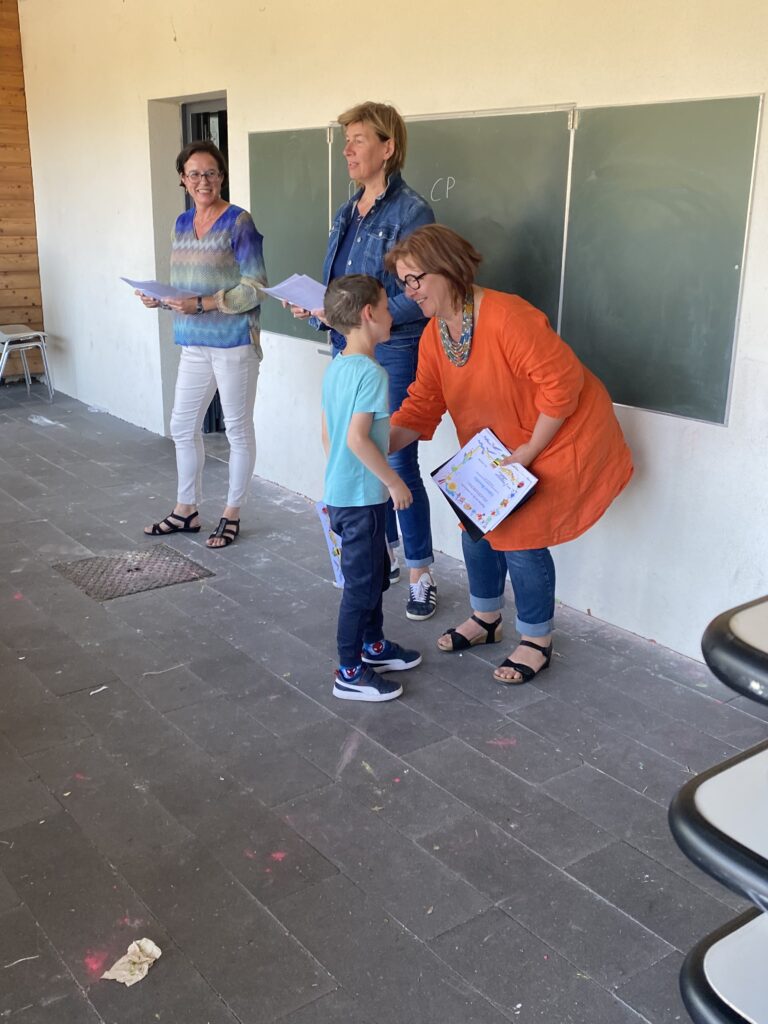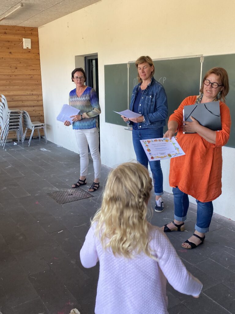 Les trois enseignantes ont ensuite appelé chaque enfant pour lui remettre un diplôme marquant cette étape importante dans sa scolarité.