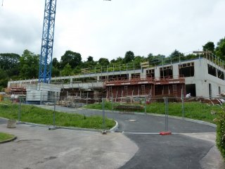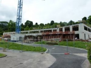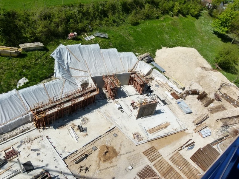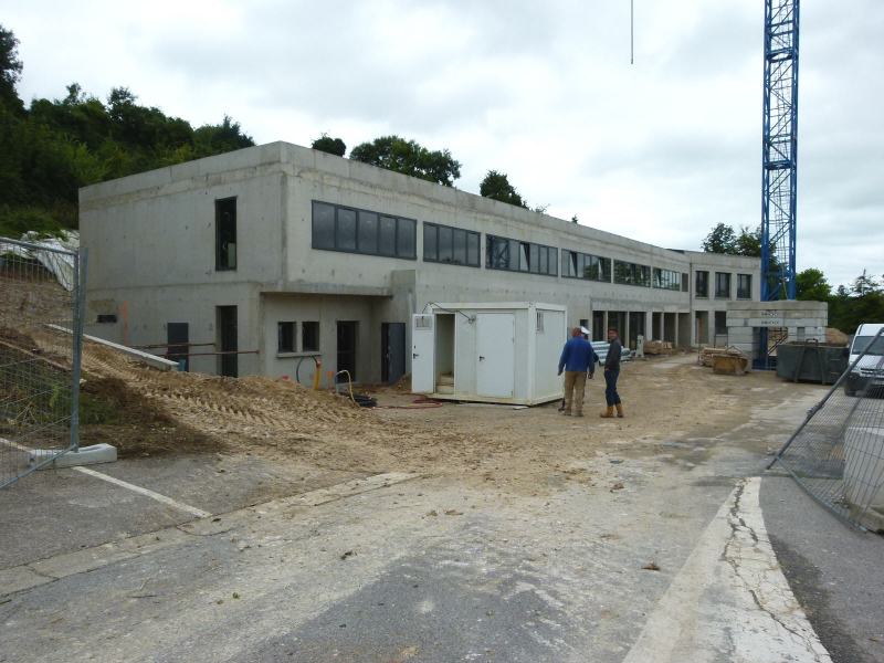 Le chantier n’accuse aucun retard. Les fondations ont été coulées, le gros œuvre du bâtiment va progressivement se monter, pour se faire une grue de 40 m a été installé.