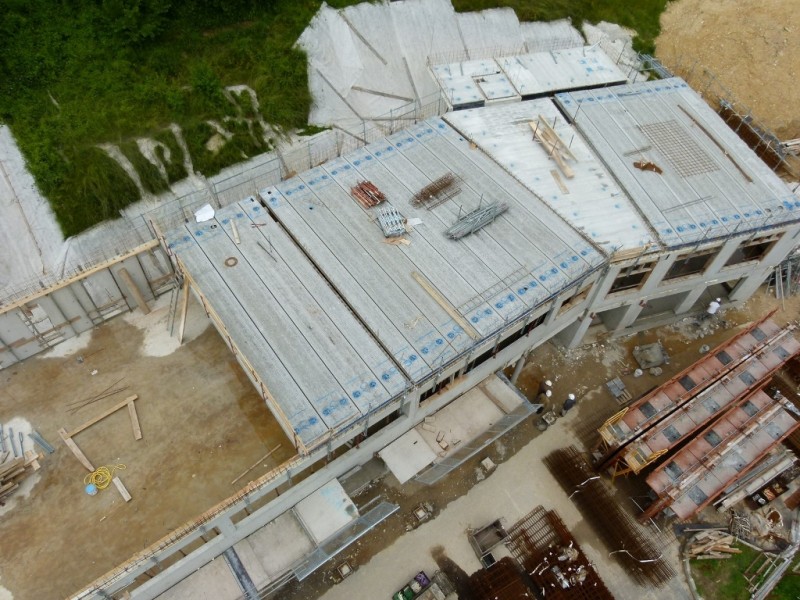 De semaine en semaine, le rez-de-chaussée prend forme, on distingue désormais le bureau de la directrice, la salle des maîtres, le réfectoire, le préau, les sanitaires et la futur cuisine.
