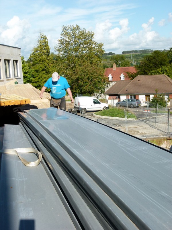Comme prévu, l’entreprise MARCHAND est intervenue durant l’été. Le bâtiment est désormais, hors d’eau, hors d’air.