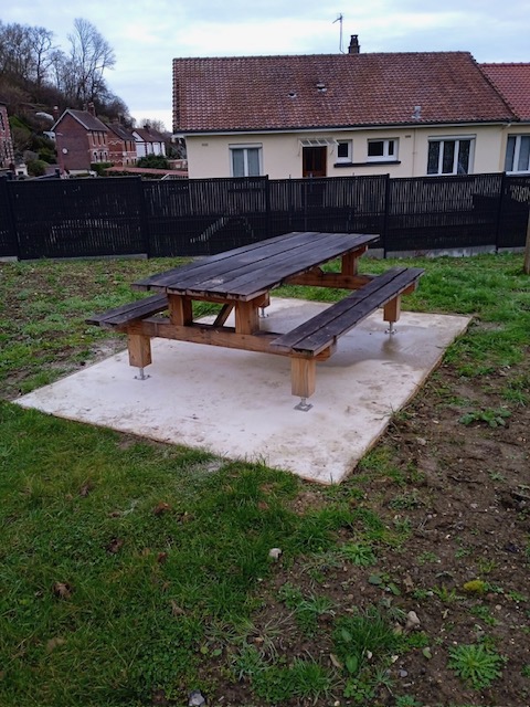 Lors de vos promenades dans la commune, vous pourrez apprécier de prendre quelques instants de repos autour d’une des tables de pique-nique nouvellement installé rue des Jardiniers, au carrefour de l’Avenue Verte ou bien Cité Petit au carrefour du Chemin de la Colline. Ces tables ont été réalisées par les élèves du Lycée des Métiers du Bois d’Envermeu.