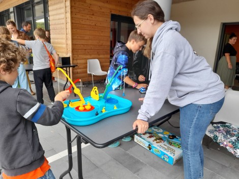 Le début de matinée un peu triste de ce jeudi 27 juin 2024, a vite laissé sa place à un soleil radieux, permettant aux parents de préparer la kermesse de fin d’année, tant attendue par les élèves. Les tables prêtées par la Mairie, installées sous le préau et dans la cour, ont vite été utilisées pour poser les différents jeux apportés par les parents, ajoutés à ceux appartenant à l’école (pas …