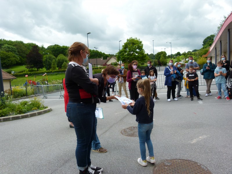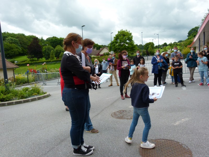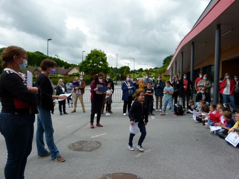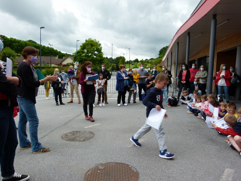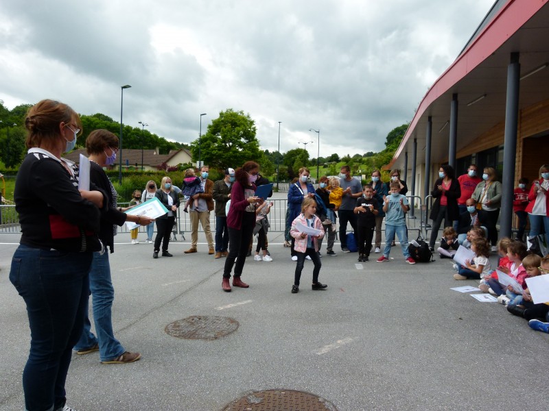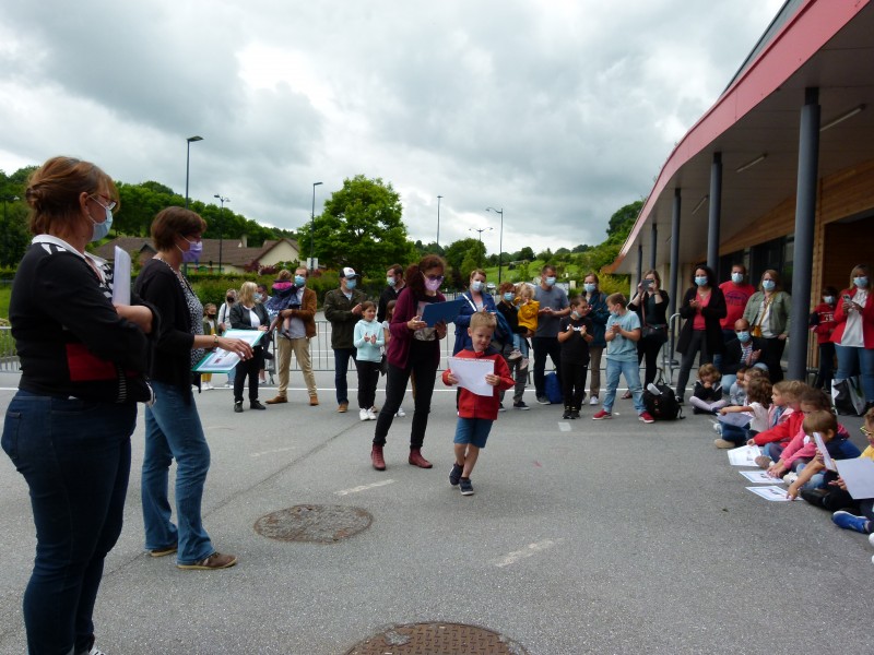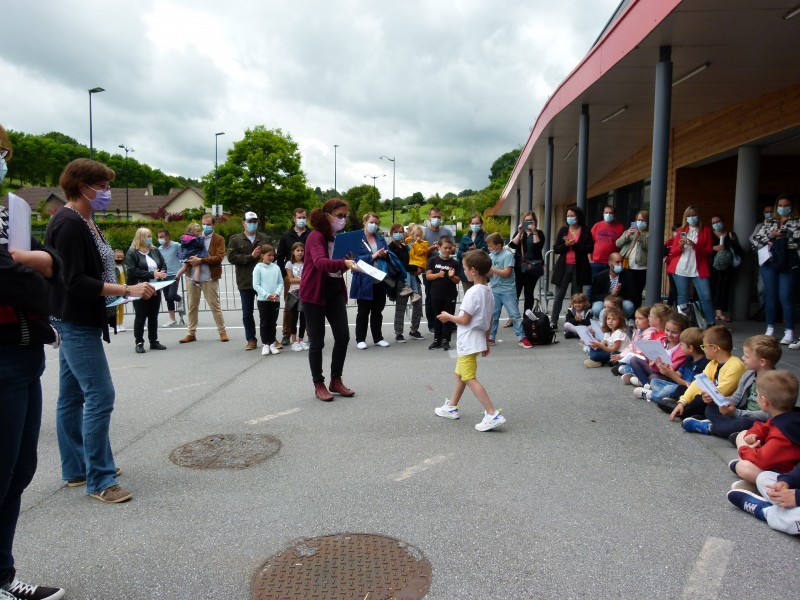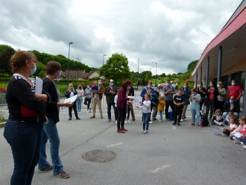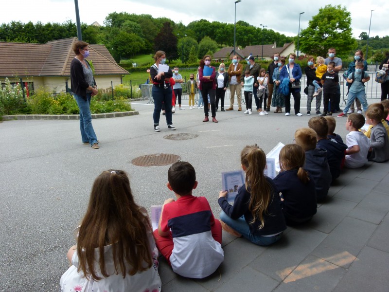 Le lundi 5 juillet à 16h15, en présence de représentants de la municipalité, Madame Decamps et Madame Hamon ont accueilli les petits écoliers et leurs parents dans la cour de l’école « La Salicorne ».