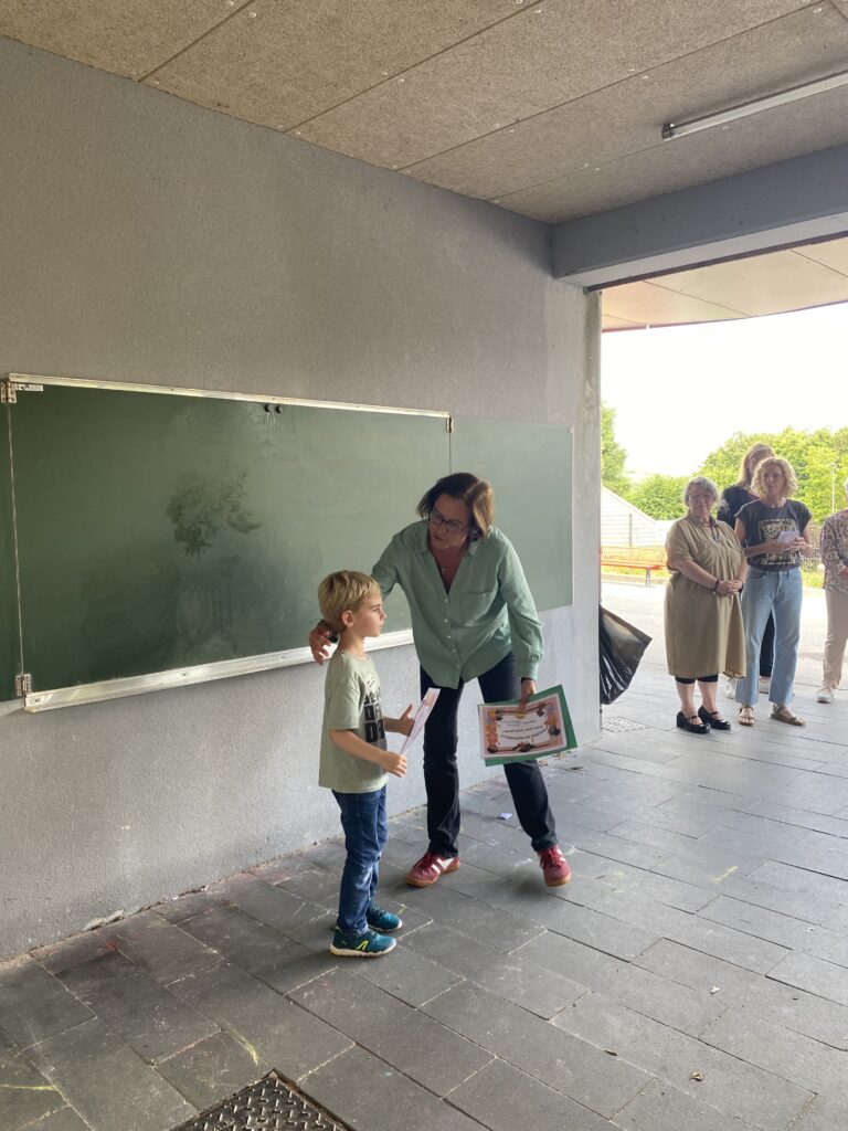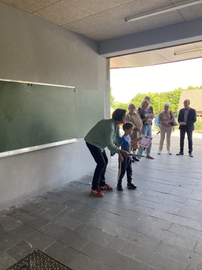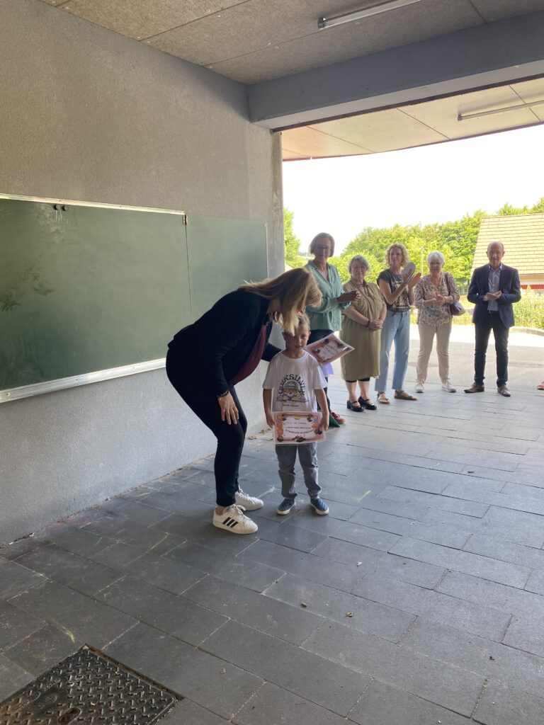 Mme Varnier fut la première à inviter chaque enfant à venir chercher son diplôme. Puis ce fut le tour de Mme Legrand qui avec beaucoup d’émotion à appeler les enfants de sa classe. En effet, pour elle depuis son arrivée à Rouxmesnil-Bouteilles, c’est la première fois que les enfants ont effectué avec elle,  un cycle complet de 3 ans.