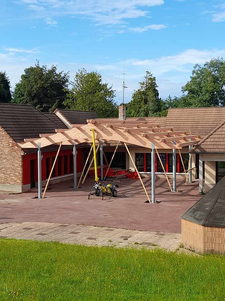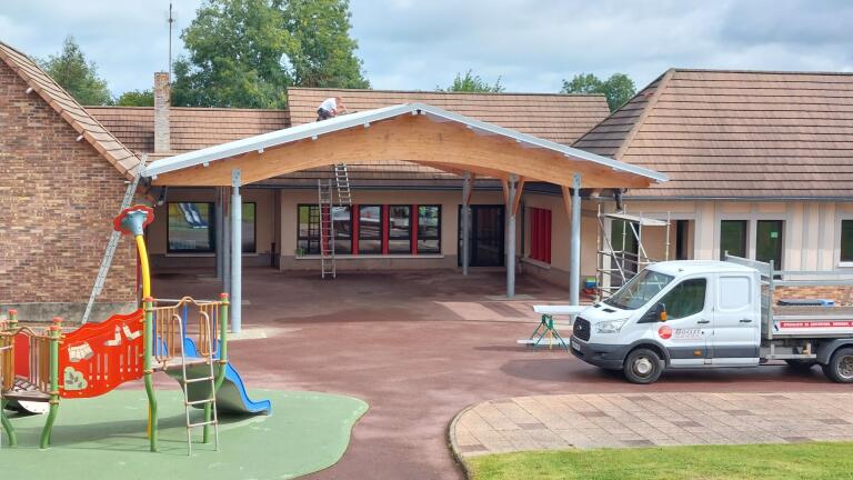 Puis une nouveauté à l’école maternelle « Les Farfadets », avec la construction d’un magnifique préau, attendu depuis plusieurs mois, qui protégera nos petits élèves tant de la pluie que des rayons du soleil. Le coût de cette réalisation s’élève à 96 914,05€ HT (116 296,86€ TTC) compensé par une subvention de 30% du coût réel, soit 29 074,22€ accordée par arrêté du 10.07.2023 au titre de la « dotation d’équipements des territoires ruraux ».