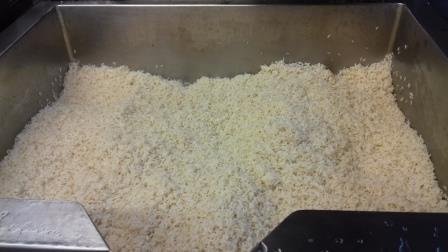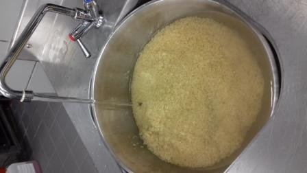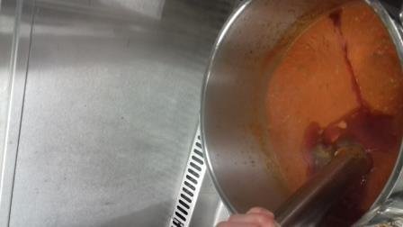 Riz Pilaf : laver le riz, chauffer l’huile, mélanger le riz à l’huile, attendre que le riz devienne transparent puis couvrir le riz avec 1.5l d’eau. Cuire jusqu‘à absorption complète… et pour finir égrainer avant de servir… On appelle aussi cette recette « riz au gras » car on peut le réaliser avec n’importe quelle matière grasse. Ainsi, le riz est très tendre et goûteux, pas sec du tout. Le cuisinier lui a ajouté de la sauce tomate « maison ».