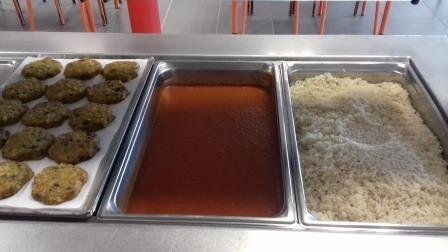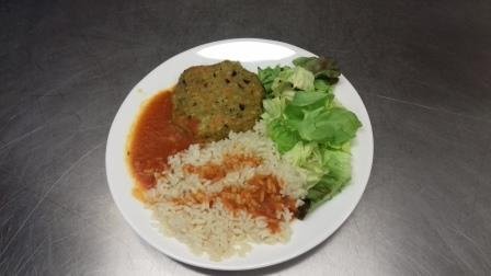 Crudités – Steak Boulgour – Riz sauce tomate – Fromage – Fruit