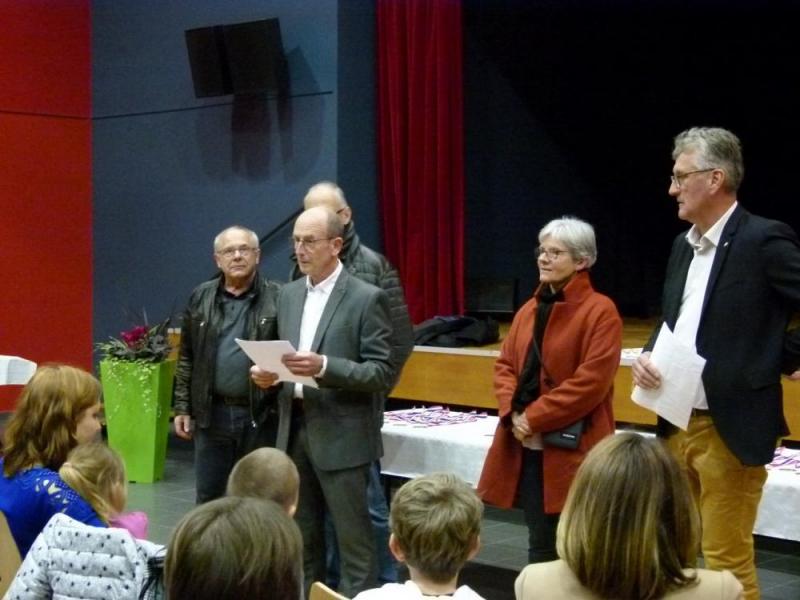 La cérémonie des récompenses des jeunes sportifs s’est tenue vendredi 8 novembre salle Corentin Ansquer. « Une cérémonie qui vise à récompenser non seulement les jeunes sportifs mais aussi les bénévoles méritants, mais finalement tous les bénévoles sont méritants, eux qui agissent dans l’ombre, partageant des valeurs, en apportant à notre commune ce supplément indispensable à son dynamisme », discours d’accueil du Maire.