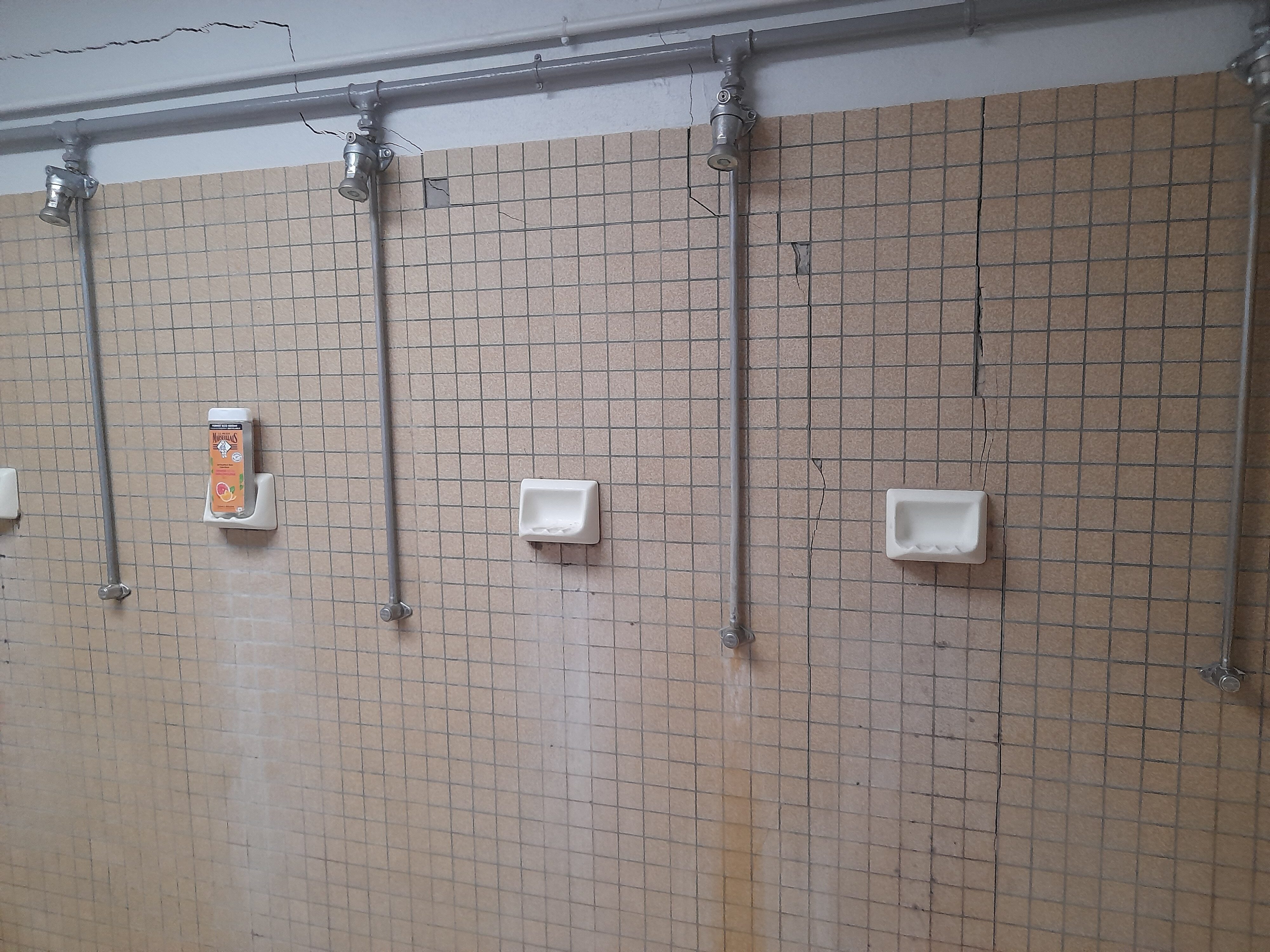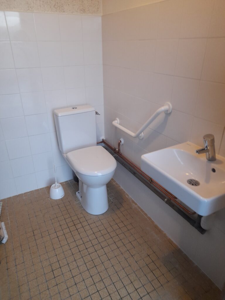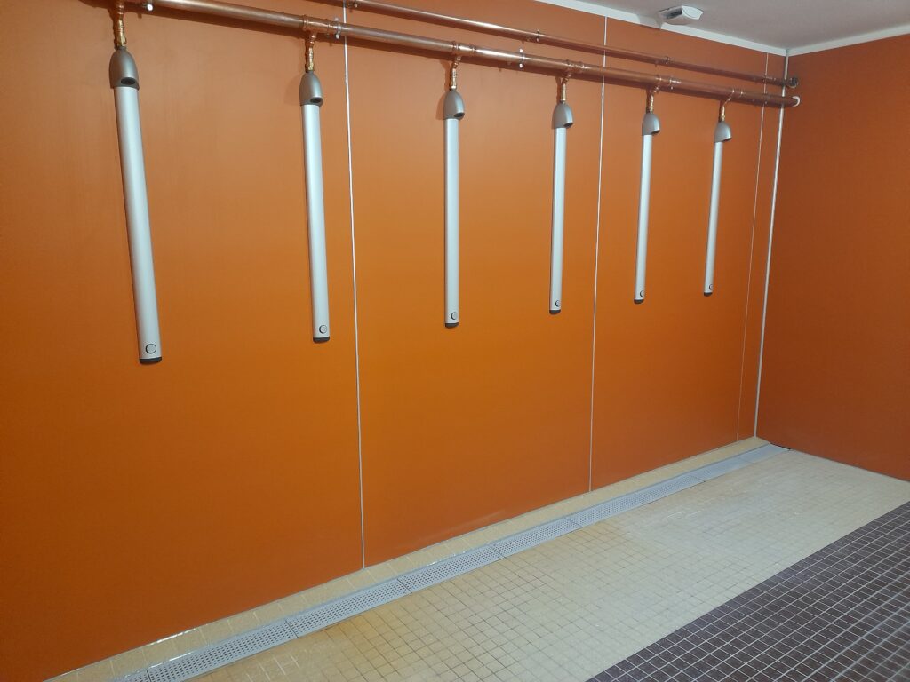 Les vestiaires actuels du club de football américain ont été inaugurés il y a plus de 40 ans, à la création du club de football en 1984. L’an dernier, les locaux ont fait l’objet d’une remise aux normes PMR, avec le remplacement des sanitaires. La structure a vieilli et, au fil des ans, des fissures sont apparues.  La réalisation d’un diagnostic du bâtiment a permis d’écarter tout risque d’instabilité de la structure. À la suite, des travaux de rénovation ont pu être entrepris. Ainsi, les murs des douches ont été recouverts de panneaux muraux étanches. Toute la partie plomberie et pommeaux des douches collectives a été remise à neuf. La robinetterie et les lavabos ont été remplacés. Les murs des sanitaires ont été recouverts de faïence pour faciliter l’entretien. Pour éviter l’humidité des vestiaires, ceux-ci ont été équipés d’une VMC. Les travaux se sont achevé par le remplacement des portes. Coût total de cette rénovation : 48 687 € HT.