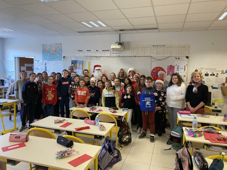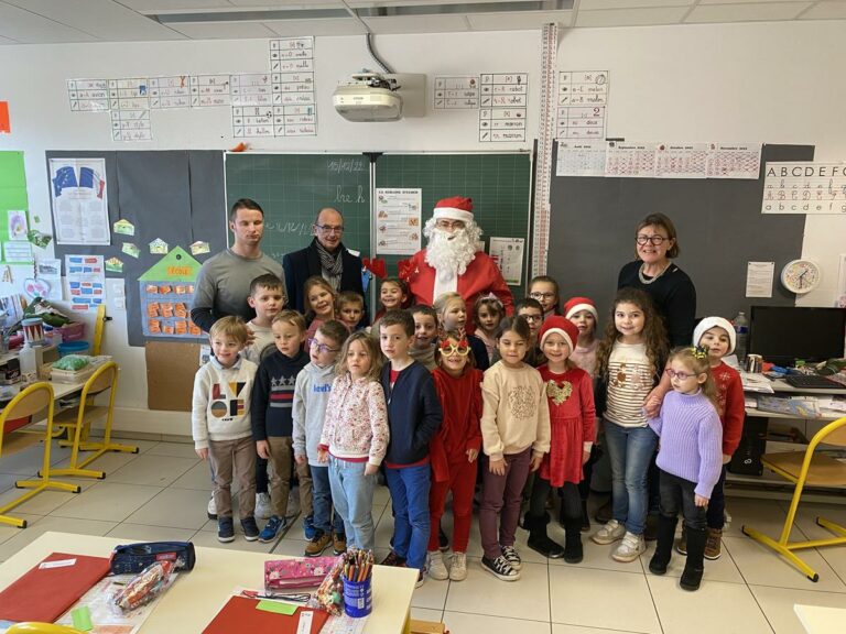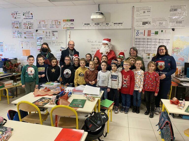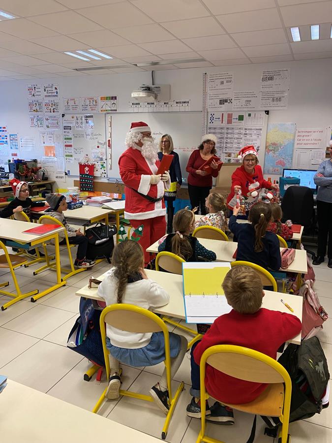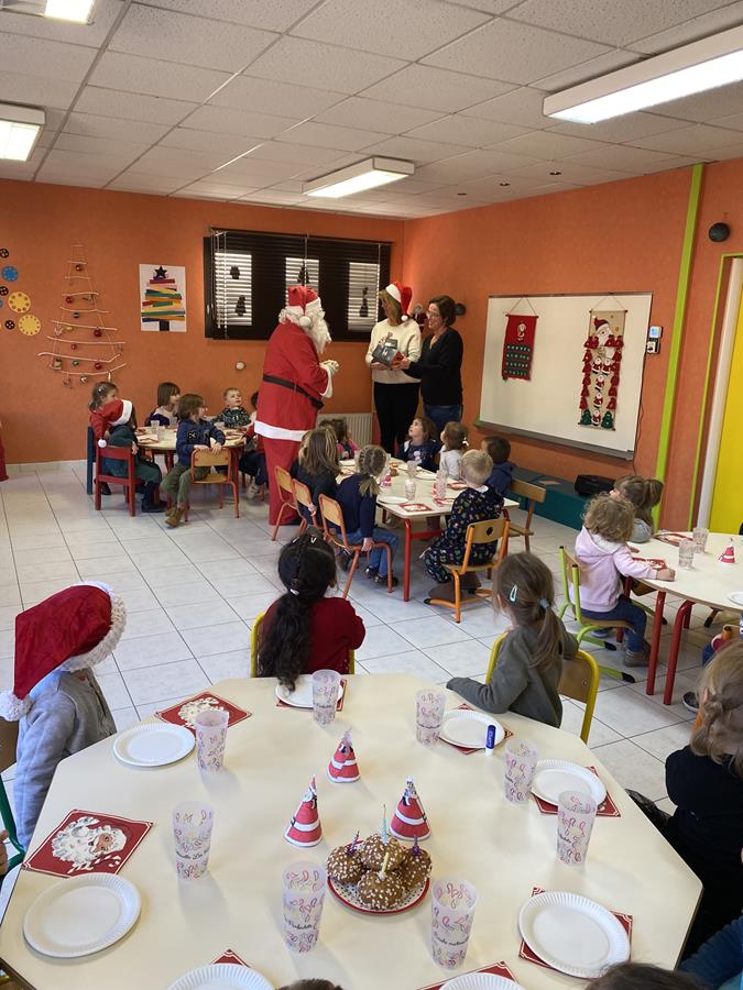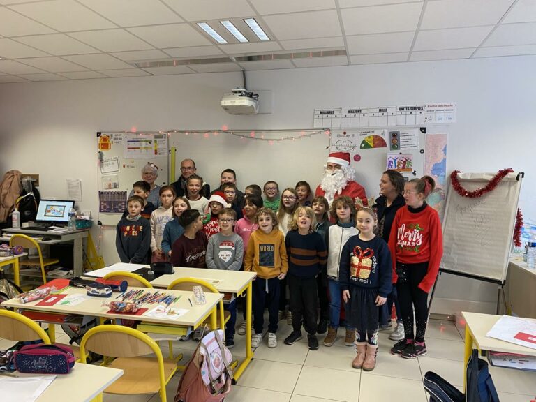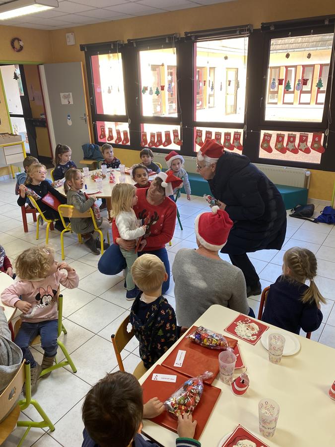 Ce vieux Monsieur étant infatigable, a décidé de s’arrêter le vendredi 16 « aux Farfadets », où un goûter de Noël était organisé. Il en a profité pour gâter à leur tour les petits de maternelle, en leur offrant livres et chocolats. Il a souhaité à tous de joyeuses fêtes de Noël et de fin d’année.