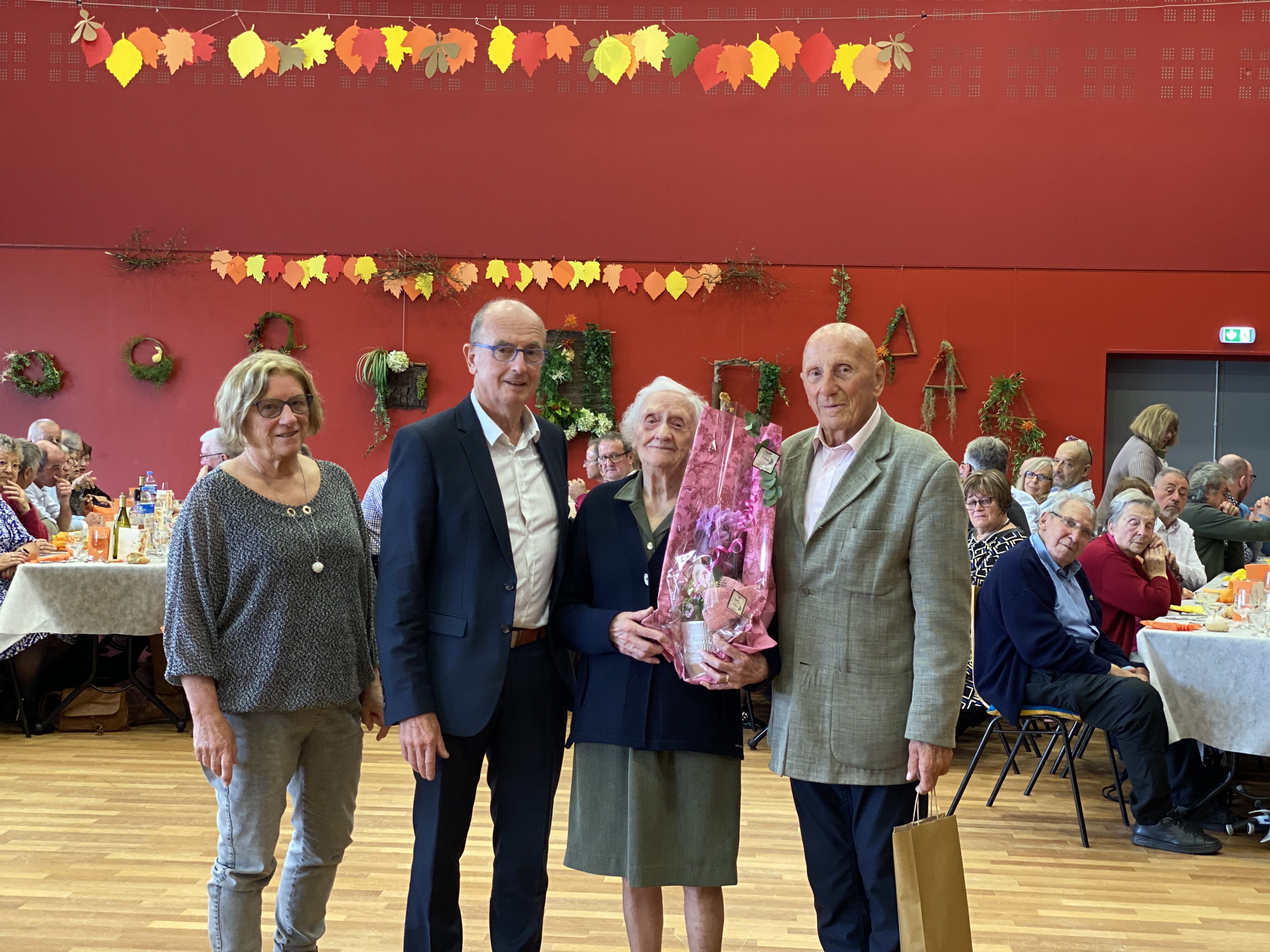 Il n’y a pas de repas des aînés sans le doyen et la doyenne de la journée. Francine BOULLARD, 98 printemps, et Claude SACEPE, 87 ans, ont été conviés à se faire photographier, témoignant ainsi de leur présence parmi nous.