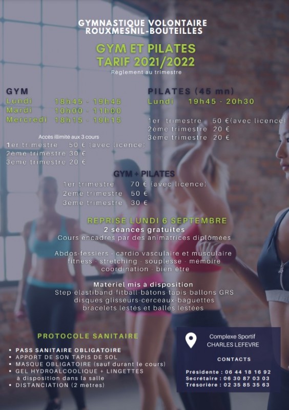 Reprise des cours de gym, de fitness et nouveau cette année du pilates !
