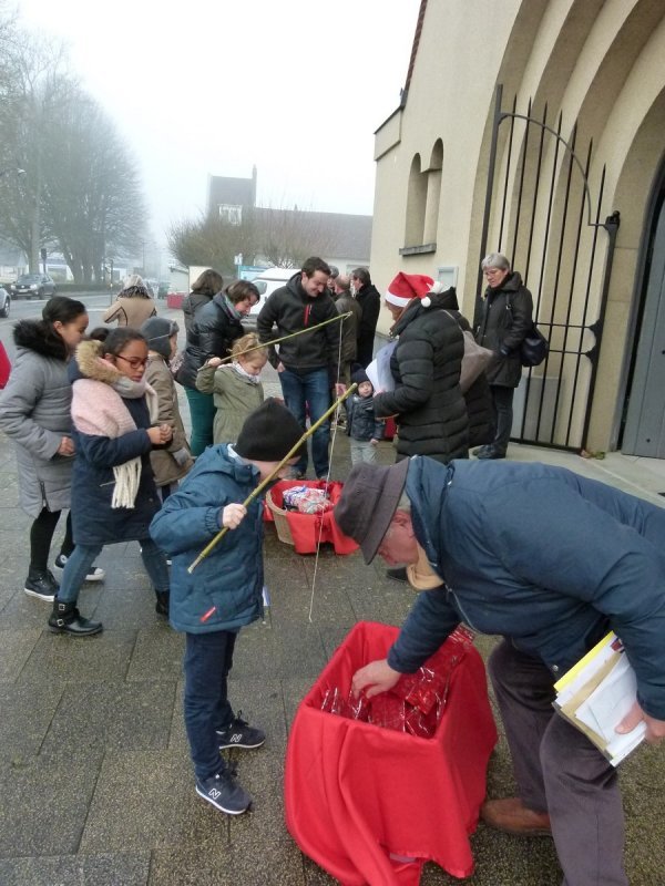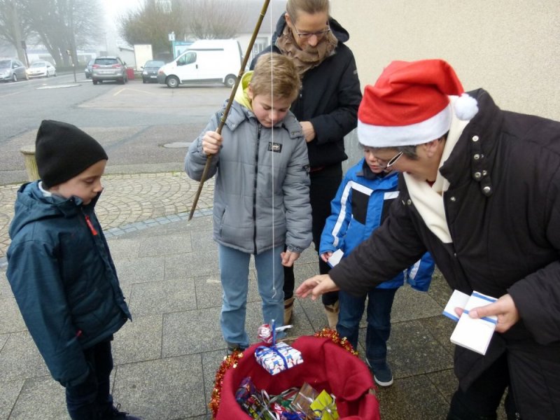 Samedi 2 décembre, sur le parvis de la Chapelle St Thérèse, les enfants de la commune avaient rendez-vous avec St Nicolas et le Père Fouettard, accompagnés de leurs fidèles compagnons. Chacun a pu participer à une pêche aux cadeaux, organisée par l’association Chasse Marée de la Varenne et sponsorisée par le garage FIAT de Rouxmesnil-Bouteilles. Boules de noël, guirlandes, CD, mugs, jouets ludiques, etc.…. ont fait le plaisir des 24 enfants présents, malgré le froid de la matinée  !!