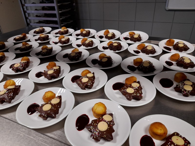Didier et Virginie avaient réfléchi depuis longtemps à la réalisation d’un menu sortant de l’ordinaire, pour offrir aux élèves un «repas de Noël festif et exceptionnel». Toujours dans l’objectif de satisfaire les enfants, ils ont préparé cette journée avec beaucoup d’attention, de soins et de plaisir, en leur proposant un menu d’exception composé de :