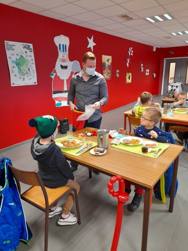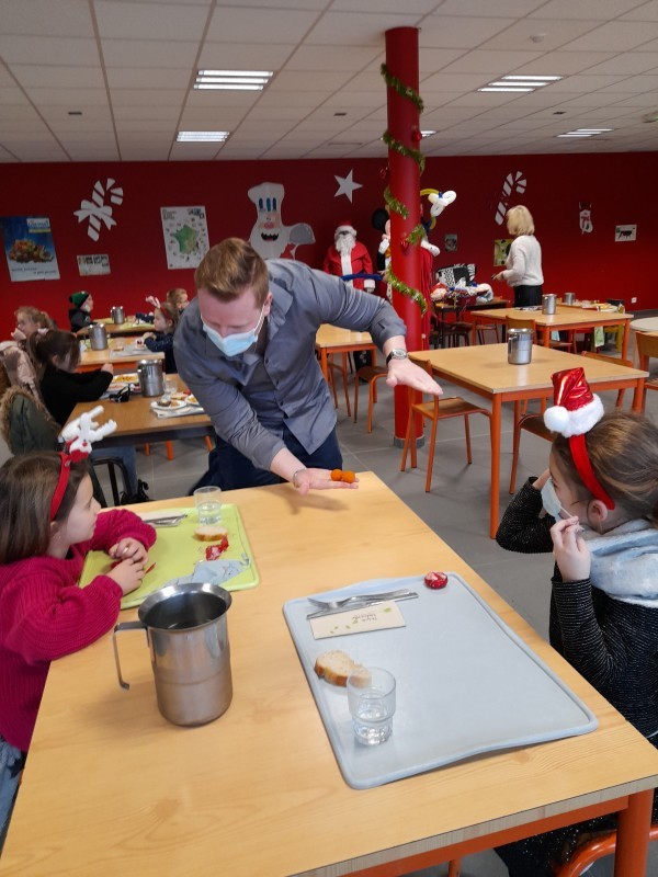 Ce jeudi 16 décembre était une journée particulière pour nos petits écoliers, puisque pour ceux  qui mangent à la cantine, c’était jour de fête.