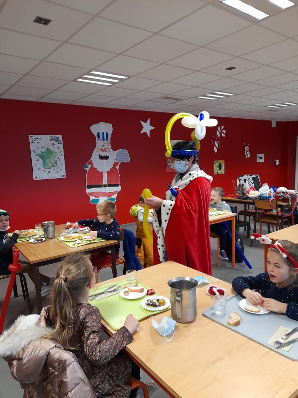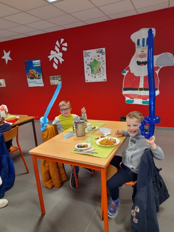 Malgré cette déconvenue, une mascotte, un magicien et un sculpteur de ballons sont venus distraire les enfants pendant le repas, apportant un peu de gaieté et de fête !