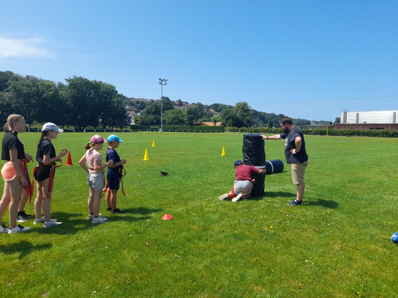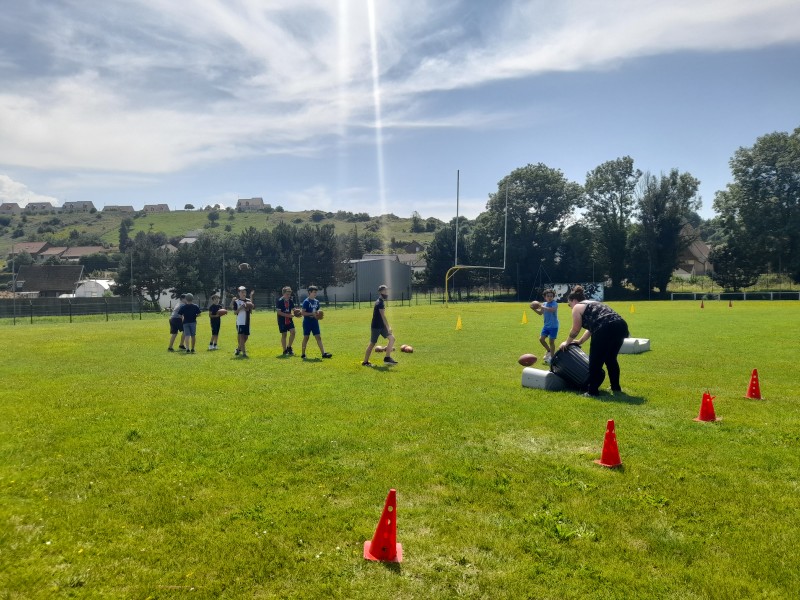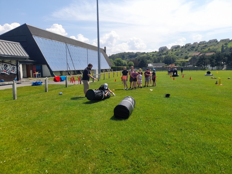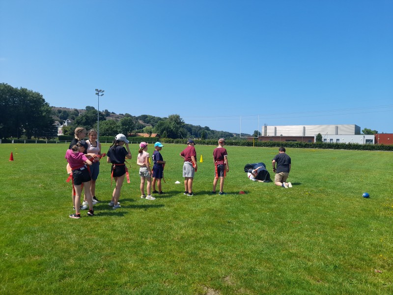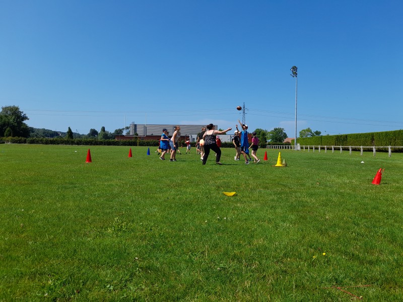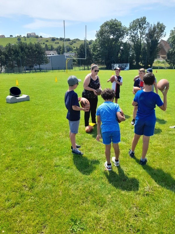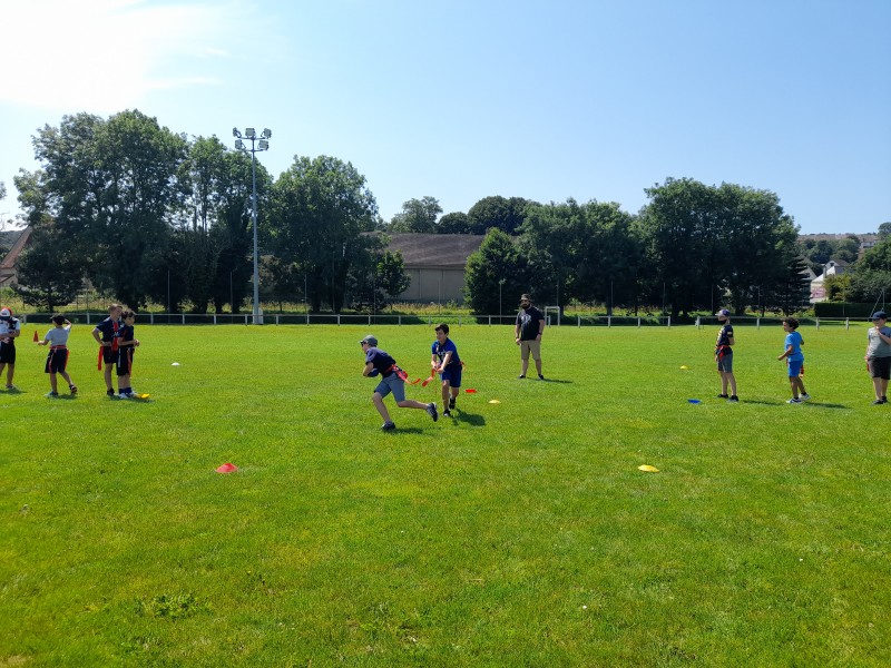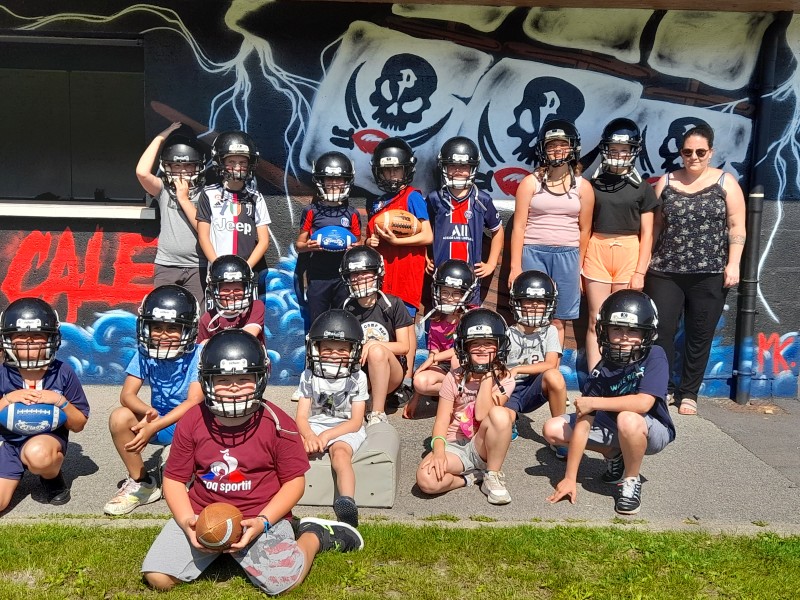 Le Flag football est une approche ludique et sans contact du Football Américain. Une vingtaine d’enfants ont choisi cette discipline pour passer une bonne après-midi sportive. Le soleil a dominé et pour rafraîchir tout ce petit monde une brume d’eau était régulièrement projetée en direction des enfants, très demandeur !! En récompense, les jeunes ont pu le temps de la photo mettre les casques des pirates.