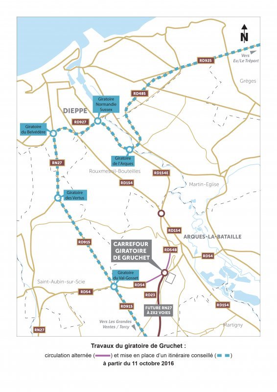 Accueil » Annonces » Travaux du giratoire de Gruchet à Arques-la-Bataille sur la RN 27