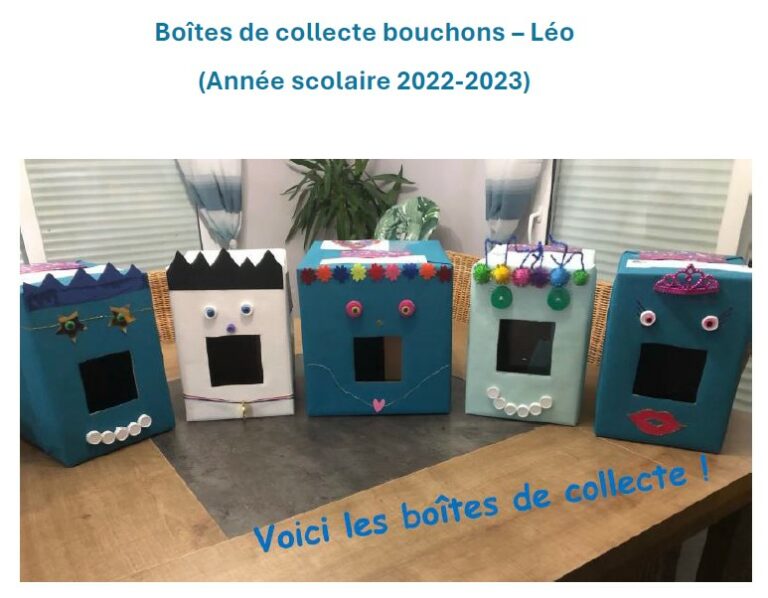 Mais, c’était sans compter avec le jeune Léo DUVAL en classe de CM2, qui du haut de ses 10 ans, avec l’accord de Mme Hamon, a décidé à l’automne 2022 de présenter son projet à ses camarades et donc de s’occuper de cette récolte. Il a alors déposé une boite dans chaque classe qu’il vide régulièrement, la collecte est stockée chez lui puis remise à l’association à chaque fin d’année. A noter que le jeune Léo est licencié au Basket Club de Rouxmesnil-Bouteilles et qu’il a impulsé cette même action auprès de ce club.