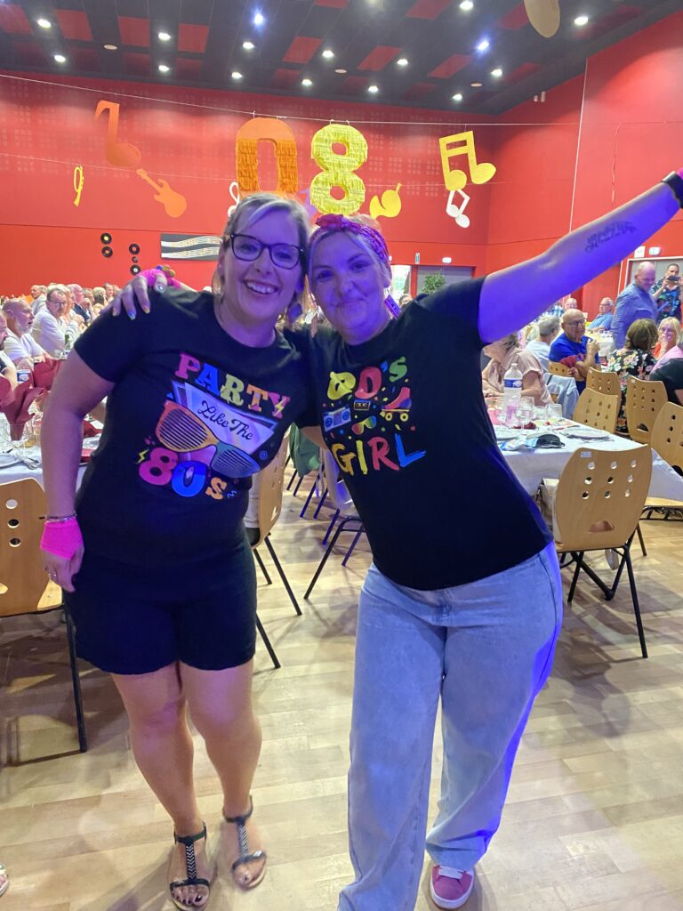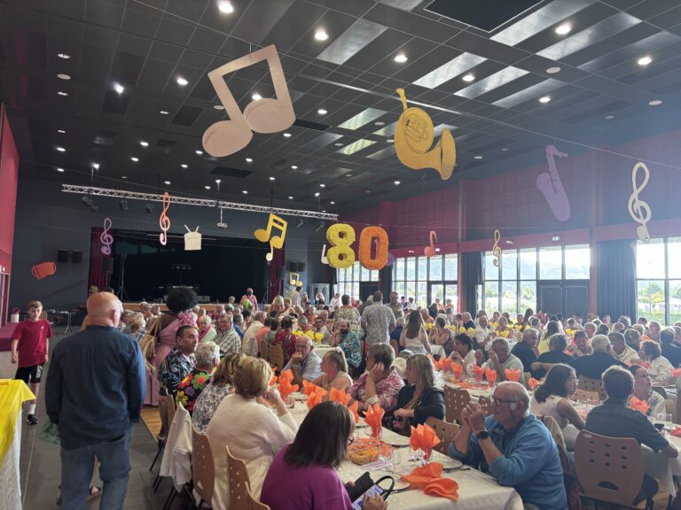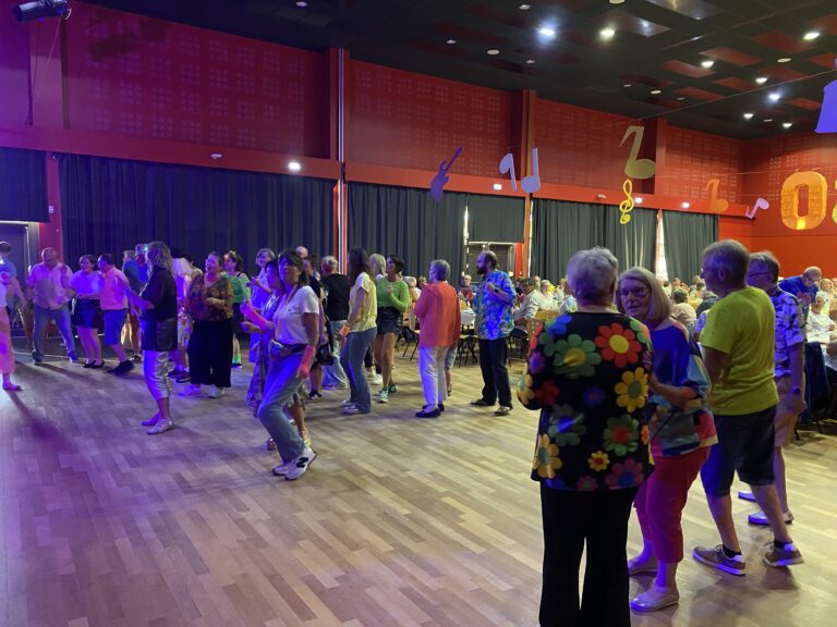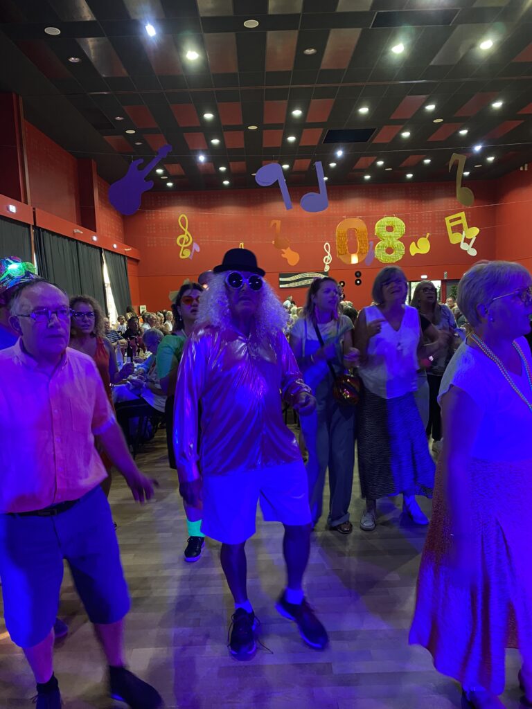 Pour cette 15ᵉ édition, la fête était au rendez-vous, avec une ambiance de folie et de bonne humeur ! Il faut dire que le thème des années 80 est un classique intemporel et indétrônable, la fête par excellence. Les danseuses et chanteuses sélectionnées par DJ José ont enflammé la salle. Qui dit soirée, dit repas et là encore le Bistrot Gourmand nous a régalés d’un buffet fraicheur de qualité et pour la touche gourmande, les petits fours de la boulangerie Martin n’ont pas posé. Cette soirée intergénérationnelle est ouverte à tous les Rouxmesnilais/es de 0 à 99 ans et c’était bien le cas samedi 28 juin, salle Corentin Ansquer, avec la présence de jeunes enfants de 8 mois, à notre doyenne Mme Boullard, 99 ans.